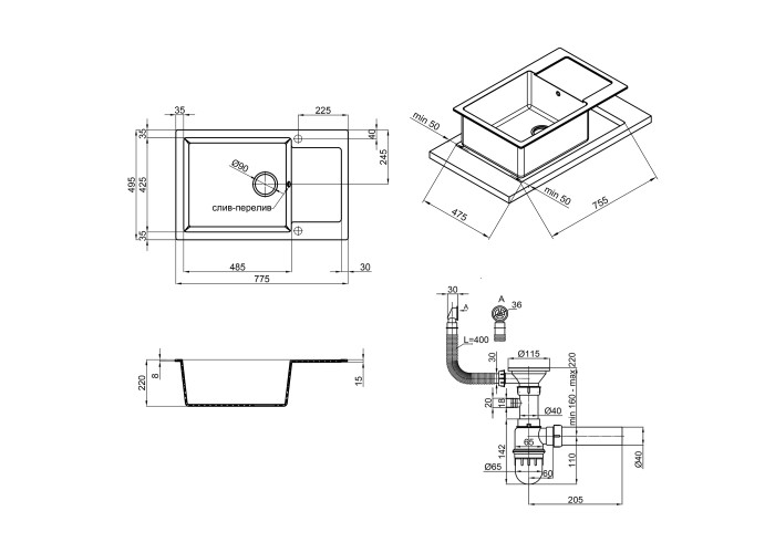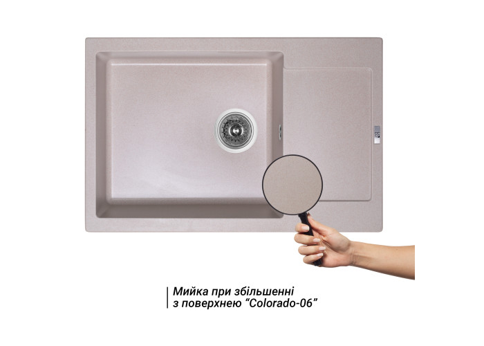 Кухонна мийка Lidz 781x510/200 COL-06 (LIDZCOL06781510200) виготовлена ??з якісного штучного каменю, має матову поверхню і буде добре виглядати у поєднанні зі змішувачем того ж кольору. Виріб монтується урізним способом у підготовлений отвір в стільниці. Мийка виконана з робочою чашею та крилом, на ній є отвір злив-перелив та заготовка для отвору під змішувач. Відмінна якість та дизайн мийки задовольнять найвибагливі вимоги.