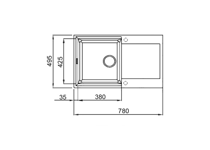 Додаткові характеристики Намічені отвори під змішувач - 2 шт.