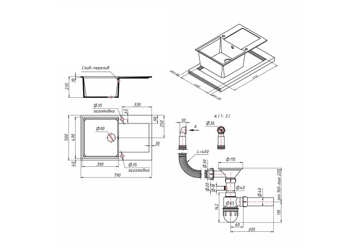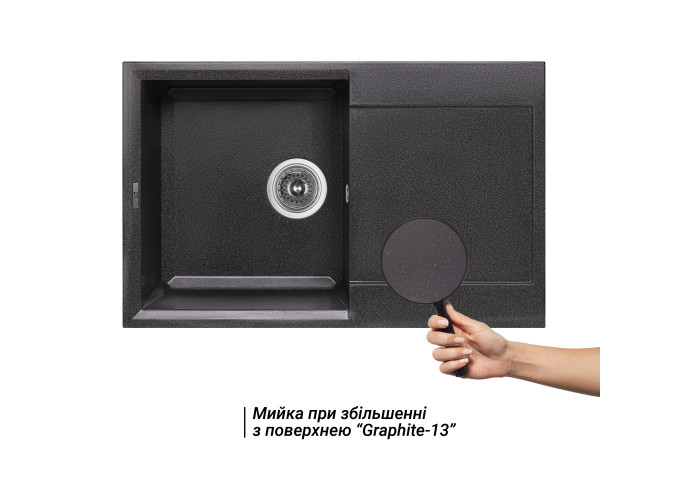 Кухонна мийка Lidz 790x495/230 GRF-13 (LIDZGRF13790495230) виготовлена ??з якісного штучного каменю, має матову поверхню і буде добре виглядати у поєднанні зі змішувачем того ж кольору. Виріб монтується урізним способом у підготовлений отвір в стільниці. Мийка виконана з робочою чашею та крилом, на ній є отвір злив-перелив та заготовка для отвору під змішувач. Відмінна якість та дизайн мийки задовольнять найвибагливі вимоги.