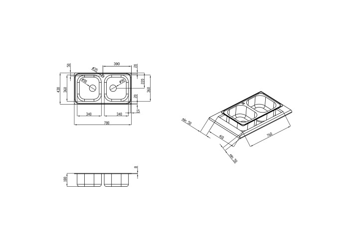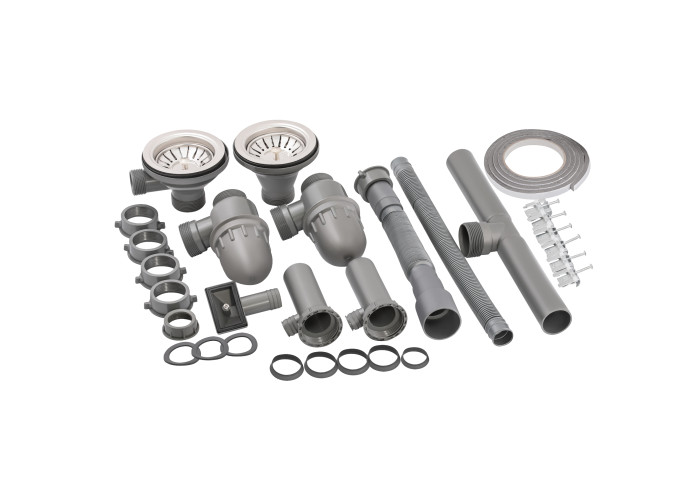 Мийка, сифон, зливник/перелив, кошиковий вентиль, ущільнювальна стрічка, кріплення.