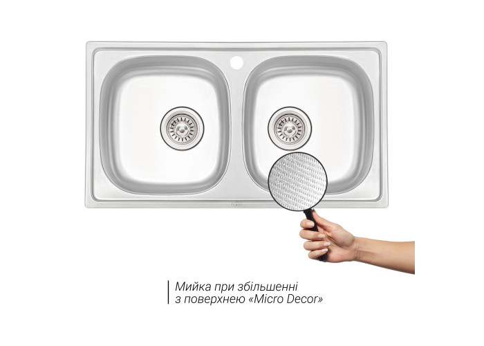 Кухонна мийка Qtap 7843-B Micro Decor 0,8 мм (QT7843BMICDEC08) виготовлена з нержавіючої сталі високої якості. Виходячи з цього, мийка прослужить довгі роки, збереже функціональність і зовнішній вигляд. Поверхня виробу швидко миється, стійка до подряпин. Мийка виконана у вигляді двох однакових чаш, а також є отвір під змішувач. Вона монтується врізним способом в стільницю і фіксується кріпленнями, які входять в комплект.