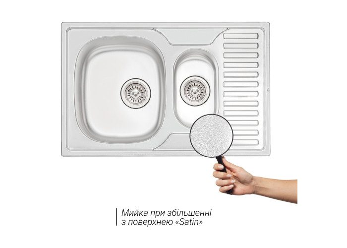 Кухонна мийка Qtap 7850-B Satin 0,8 мм (QT7850BSAT08) виготовлена з високоякісної нержавіючої сталі харчової марки, тому виріб прослужить довгі роки. Відмінна якість і дизайн мийки дозволять задовольнити найвищі вимоги. Мийка виконана з робочою основною чашею, додатковою чашею для розморожування продуктів і ребристим крилом для сушіння посуду. Монтується врізним способом в отвір в стільниці.