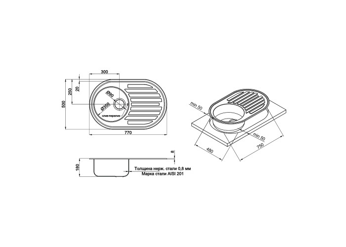 Мийка, сифон, зливник/перелив, кошиковий вентиль, ущільнювальна стрічка.