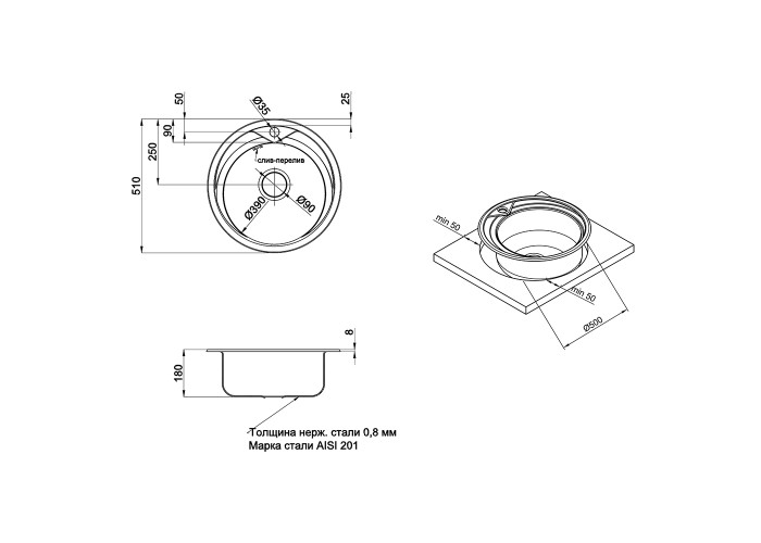 Кухонна мийка ULA 7109 ZS Satin 08 виготовлена з високоякісної нержавіючої сталі харчової марки, тому прослужить довгі роки. Вона сертифікована, легко переносить вплив окропу та пари температурою до 140°С. Матова поверхня гладка, швидко миється та завжди має привабливий вигляд. Виріб виконано з круглою чашею, переливом та поверхнею з отвором під змішувач. Монтується урізним способом в отвір в стільниці.