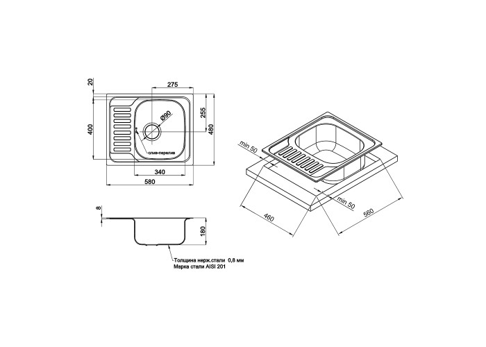 Кухонна мийка ULA 7201 ZS Satin 08 виготовлена з високоякісної нержавіючої сталі харчової марки, тому прослужить довгі роки. Вона сертифікована, легко переносить вплив окропу та пари температурою до 140°С. Матова поверхня гладка, швидко миється та завжди має привабливий вигляд. Виріб виконаний з прямокутною чашею, переливом і ребристим крилом для сушіння посуду або розморожування продуктів. Монтується урізним способом в отвір в стільниці.