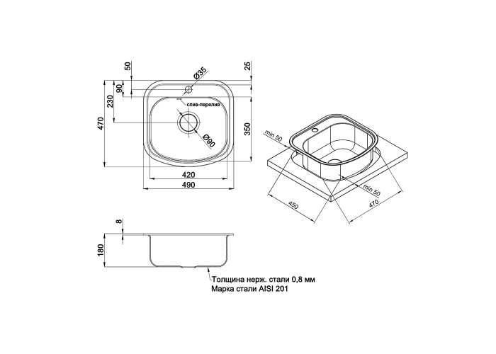 Мийка, сифон, зливник/перелив, кошиковий вентиль, ущільнювальна стрічка.