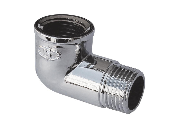 Косинець латунний хромований (коліно) з внутрішньою і зовнішньою різьбою - деталь трубопроводу, яка використовуються для зєднання трубопроводів під кутом 90 градусів, і являє собою порожнистий вигнутий циліндр з внутрішньої і зовнішньої різьбами на краях.