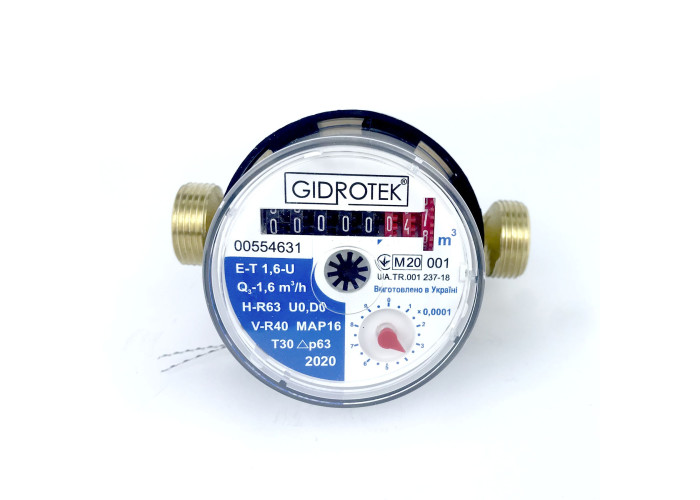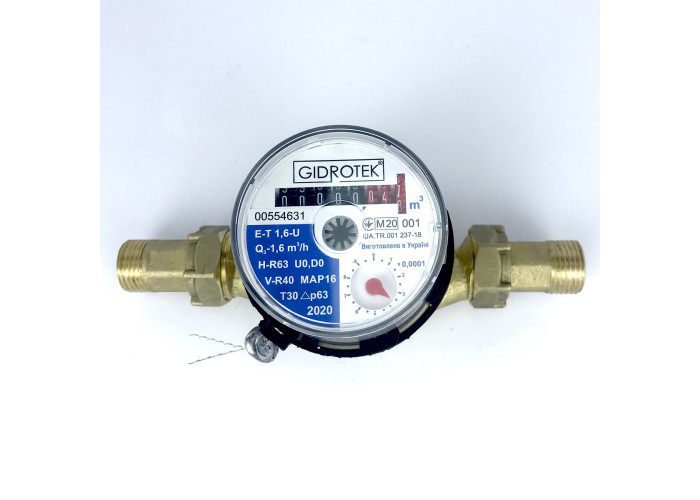 Лічильник води Gidrotek Е-Т 1,5U для холодної води зі штуцером - призначений для вимірювання обєму холодної і гарячої води, що протікає по трубопроводу.