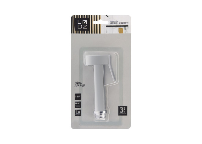 Лійка для гігієнічного душу Lidz (CRM) 51 08 000 00 виконана з латуні, тому прослужить довгі роки й запобіжить появі корозії. На ручку нанесено фірмовий логотип виробника. Лійка монтується без особливих зусиль та додаткових підручних засобів. Вона компактна, не забере багато місця, тому пасуватиме навіть маленьким приміщенням.