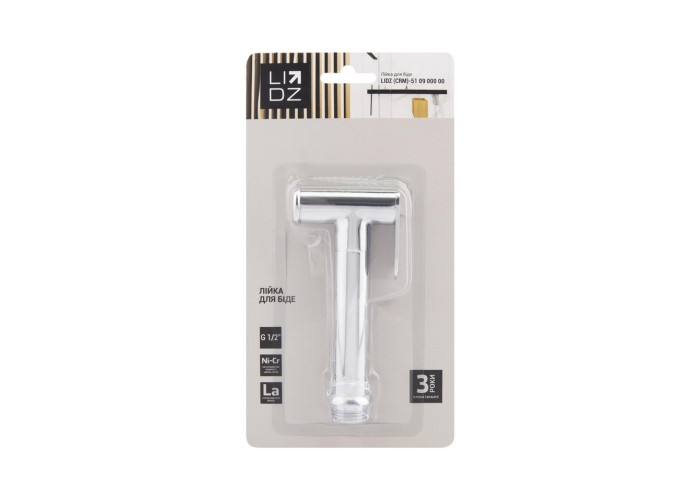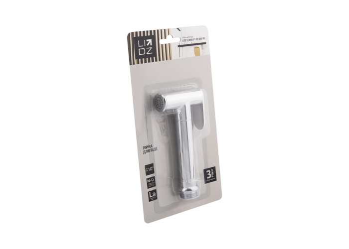 Лійка для гігієнічного душу Lidz (CRM) 51 09 000 00 виконана з латуні, тому прослужить довгі роки й запобіжить появі корозії. На ручку нанесено фірмовий логотип виробника. Лійка монтується без особливих зусиль та додаткових підручних засобів. Вона компактна, не забере багато місця, тому пасуватиме навіть маленьким приміщенням. Подача води відбувається тільки при натисканні на клапан.