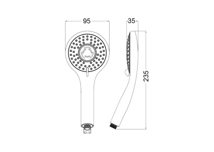 Лійка для ручного душу GF (CRM)-SH-112 виконана з пластику з хромованим покриттям корпусу, яке захистить виріб від корозії, а також виглядає естетично. Монтується лійка без особливих зусиль й необхідності додаткових підручних засобів. Для підключення до душового шланга є підвід з зовнішньою різьбою. Лійка сумісна з усіма гнучкими шлангами для душу. Для зручності прийняття душу передбачено три типи струменя: "дощ", "м‘який" і "масаж", а також важільний перемикач.