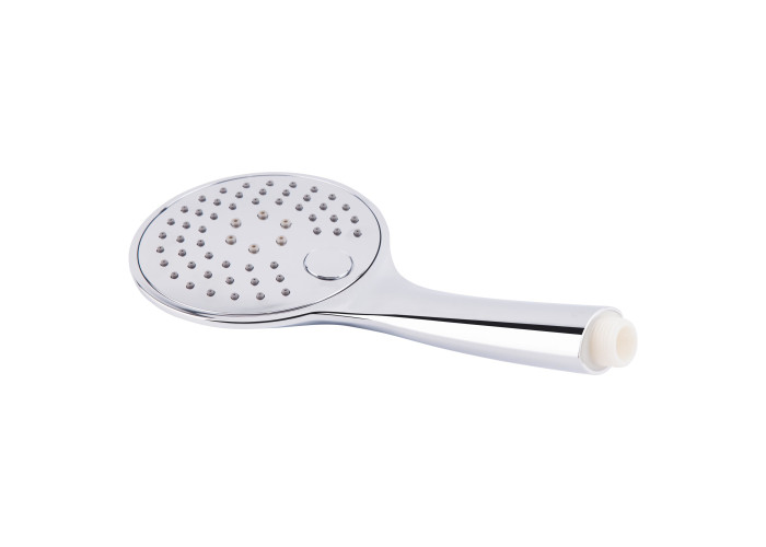 Лійка для ручного душу GF (CRM)-SH-119 виконана з пластику з хромованим покриттям, яке захистить виріб від утворення корозії. На ручку нанесено фірмовий логотип виробника. Монтується лійка без особливих зусиль й необхідності додаткових підручних засобів за допомогою підводу з зовнішньою різьбою. Лійка сумісна з усіма гнучкими шлангами для душу. Для зручності передбачено три типи струменя, а також кнопковий перемикач.