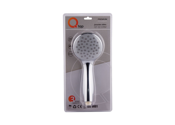 Лійка Qtap 02 виконана з пластику з хромованим покриттям, тому поверхня блискуча, не іржавіє, не боїться гідроударів й перепаду температур, а також не облазить від агресивних миючих засобів. Для підключення до душового шланга є підвід з зовнішньою різьбою. Завдяки універсальному діаметру лійка сумісна з усіма гнучкими шлангами для душу. Монтується без особливих зусиль та додаткових підручних засобів.