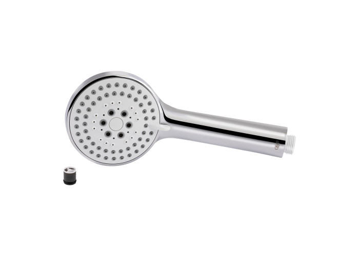 Лійка для ручного душу Qtap Rucni A100O5PCW виготовлена з міцного пластику з хромованим покриттям, що не боїться гідроударів і перепаду температур, а також не псується від агресивних миючих засобів. Для підключення до душового шлангу є підведення з зовнішнім різбленням. Завдяки універсальному діаметру лійка сумісна з усіма шлангами для душу. У виробі передбачено 5 типів струменя.