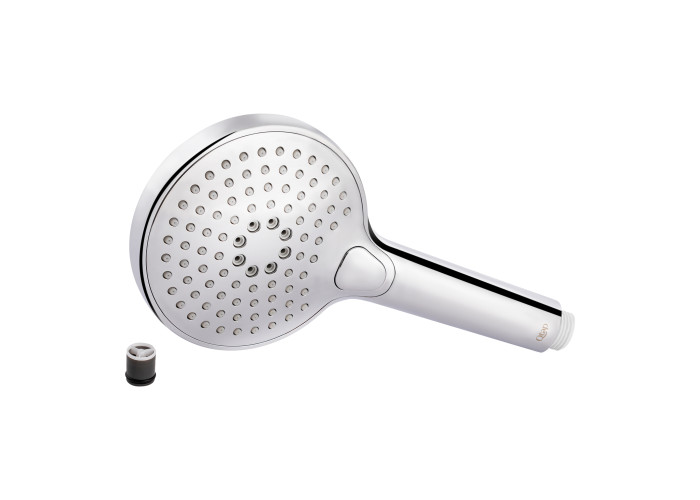Лійка для ручного душу Qtap Rucni A120O3KCC виготовлена з міцного пластику з хромованим покриттям, що не боїться гідроударів і перепаду температур, а також не псується від агресивних миючих засобів. Для підключення до душового шлангу є підведення з зовнішнім різбленням. Завдяки універсальному діаметру лійка сумісна з усіма шлангами для душу. У виробі передбачено 3 типи струменя.
