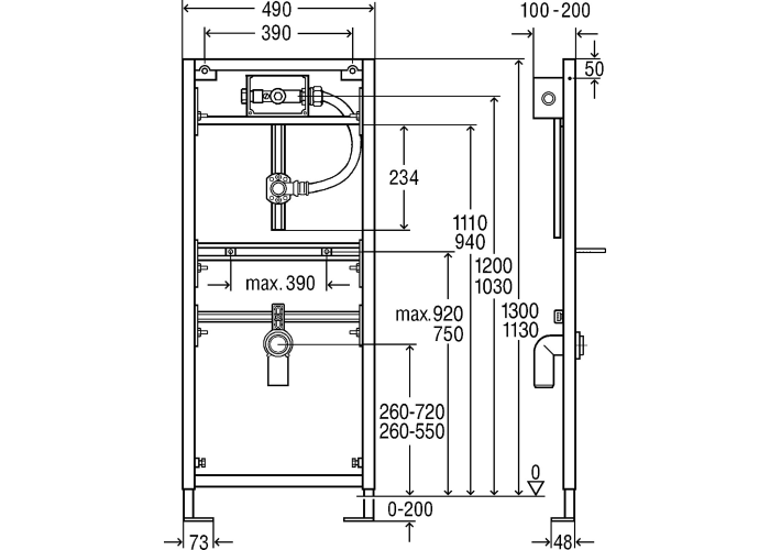 вільна регулювання монтажної глибини від 130 до 200 мм