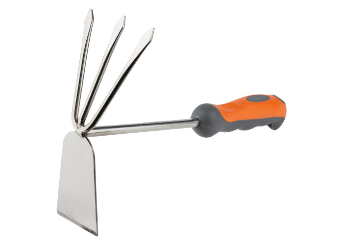 Мотика комбінована плоска + 3-х зубова (нерж.) (ABS + TPR) FLORA (5041454) Призначений для розпушування, аерації ґрунту на невеликих грядках і клумбах. Включає два типи профілів: 3-х зубова і плоска. Зубці служать для розбивки грудок і вирівнювання ґрунту. По закінченню роботи необхідно очистити робочу частину інструменту від залишків ґрунту. Особливості: високоякісна нержавіюча сталь; ергономічна двокомпонентна рукоятка добре лягає в долоню. Купити мотику комбіновану FLORA Ви можете, оформивши замовлення в нашому інтернет-магазині за допомогою простої форми, доставка здійснюється по всій Україні. Якщо у Вас виникли питання, Ви можете зателефонувати за вказаними номерами телефонів або замовити зворотний дзвінок. Фахівці нашого інтернет-магазину нададуть Вам докладні консультації та допоможуть зробити правильний вибір.