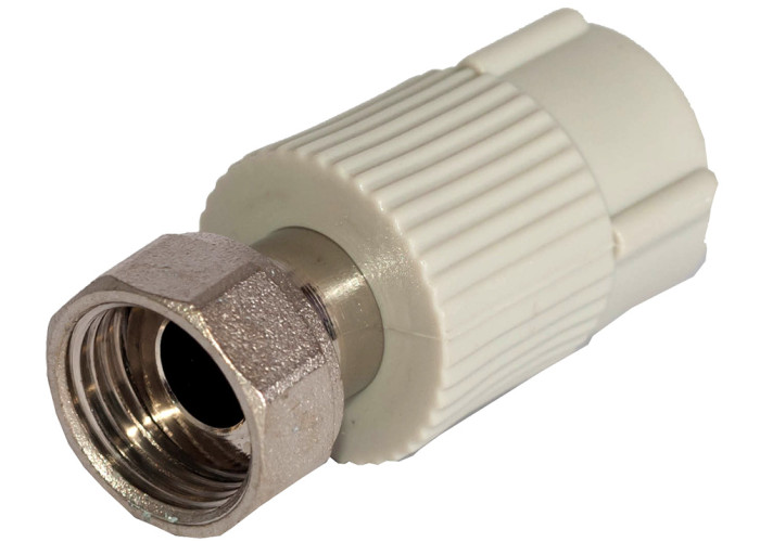 Сіра поліпропіленова муфта з накидною гайкою Ø20. Лінійка продукції ТЕВО technics є кращою за асортиментом поліпропіленових труб і фітингів на ринку. Продукція поставляється в білому і сірому кольорі і представляє широкий діапазон з'єднувальних елементів і гідравлічної арматури: від 20 до 160 мм. В цілому асортимент бренду ТЕВО включає понад 1000 товарних позицій. У конструкції фітингів ТЕВО technics закладено кілька принципових рішень, що підвищують надійність і зручність застосування. Латунні елементи комбінованих фітингів мають зворотні проточки, що забезпечують надійніше приєднання латунної і поліпропіленової частин. Герметичність з'єднання зберігається навіть при підвищених механічних навантаженнях. Спеціальні мітки на поверхні фітингів спрощують процес монтажу. Продукція повністю відповідає нормам ГОСТ та DIN, проходить контроль якості на всіх етапах виробництва, де використовується високоякісна сировина з Німеччини та Південної Кореї.