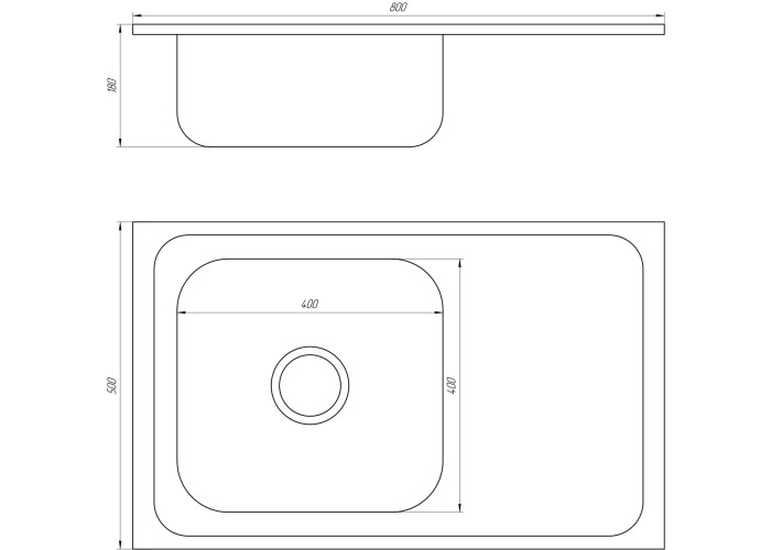 MR 8050 Мийка прямокутна накладна 800х500х180 Satin Left