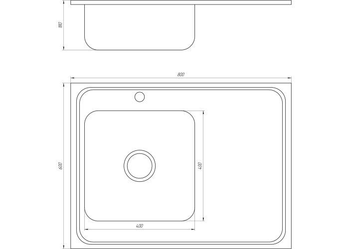 MR 8060 Мийка прямокутна накладна 800х600х180 Polish Left