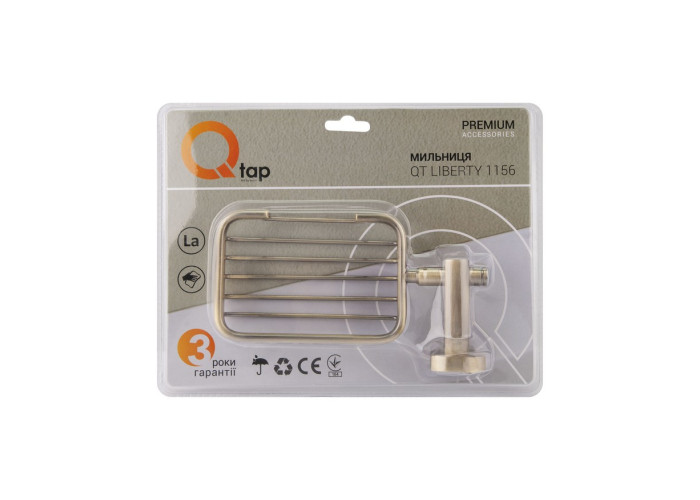 Мильниця Qtap Liberty ANT 1156 складається з металевих кріплень та гратчастої чаші овальної форми з бортиком, завдяки чому вода буде стікати, а мила вистачить надовше. Для зручного використання мила передбачена виїмка. Тримач виконаний з декорованими вставками. Мильниця кріпиться на стіні на бажаній висоті шурупами. Приховане кріплення дозволяє зберегти обробку ванної кімнати. Глянцеве покриття відполіроване та збереже свый блиск на довго.