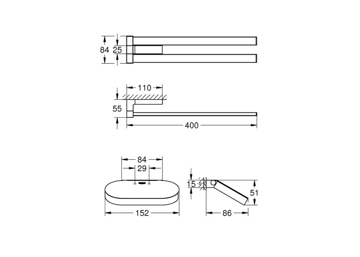 Набір аксесуарів Grohe тримач для рушників Selection Cube 40768000 + тримач для туалетного паперу Selection 41069000