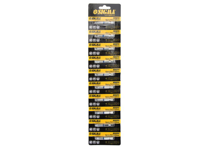 Набір біт PН2x50мм 1/4" 10шт S2 Chrome стрічка Sigma 4010261