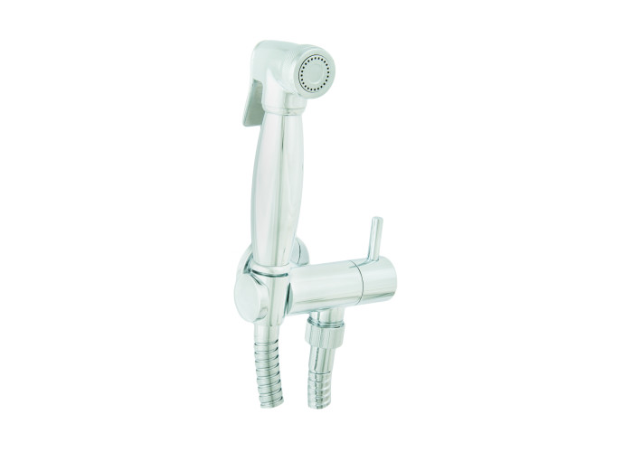 Представлений тут набір для біде Emmevi CR132 виготовлений із високоякісної латуні з покриттям кольору хром, складається з круглої гігієнічної лійки діаметром 2.8 см з одноструменевим режимом роботи, настінного тримача для ручної лійки й душового шланга в металевому обплетенні завдовжки 120 см.