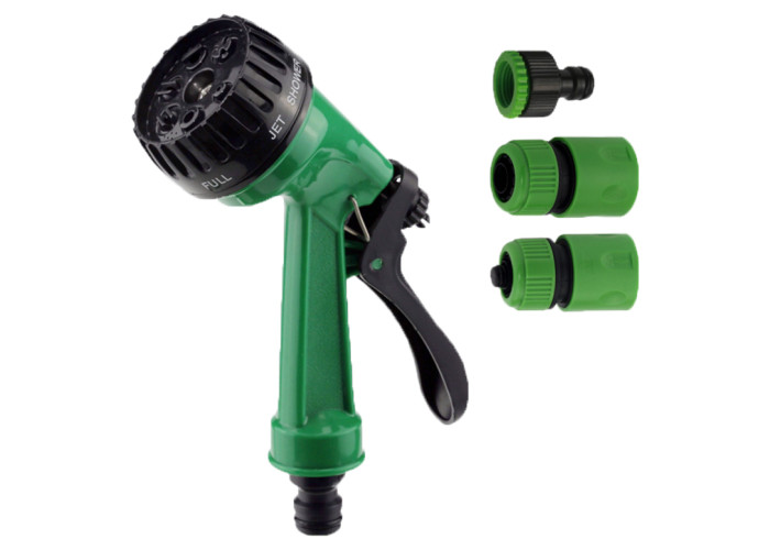 Набір для поливу пістолет розпилювач 7-ми режимний 2 коннектора + адаптер на шланг ¾ "Grad (5012545) призначений для спрямованого поливу присадибних ділянок, городів, клумб, газонів і т.д. Набір дозволяє зібрати поливальну лінію і підключити її до водопровідної труби або крану. Переваги: Ударостійкий пластик; Можливість підключення до шлангу та водопровідного крану; Швидкий і легкий монтаж.