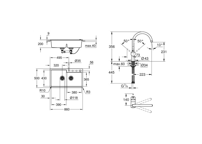Мийка: Grohe K500 31649AP0. Змішувач: Grohe Minta 32917KS0