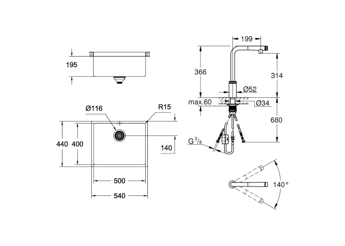 Набір Grohe мийка кухонна K700 31574AL0 + змішувач Minta Smartcontrol 31613A00 стане незамінним атрибутом будь-якої сучасної кухні. Стійкість до пошкоджень і засобів для чищення, а також довговічність мийки є результатом використання якісної нержавіючої сталі товщиною 1 мм. Зручний змішувач з високим висувним виливом і кутом повороту на 360 °C дозволить розширити функціональність даної кухонної зони.