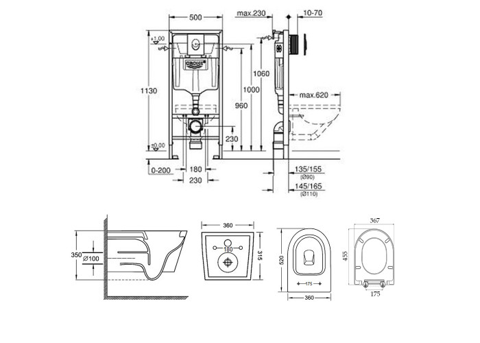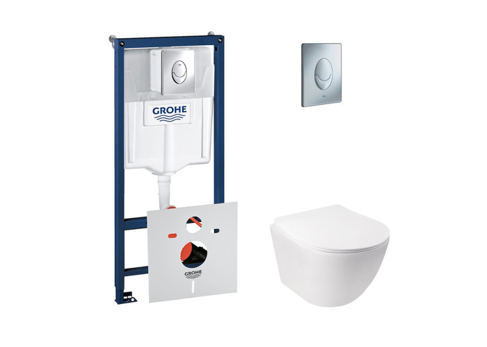 Унітаз, сидіння, інсталяція, панель змиву, звукоізоляційна прокладка, кріпильні деталі.