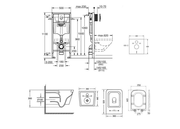 Унітаз, сидіння, інсталяція, панель змиву, звукоізоляційна прокладка, кріпильні деталі.