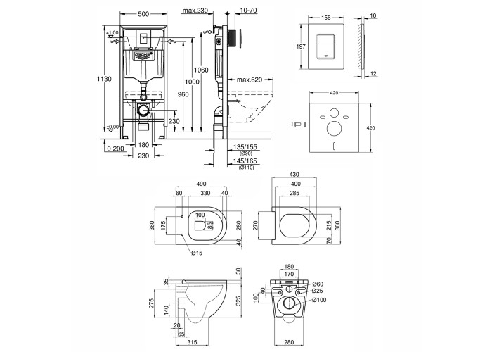Інсталяція, панель змиву, звукоізоляційна прокладка, унітаз, сидіння, кріплення.