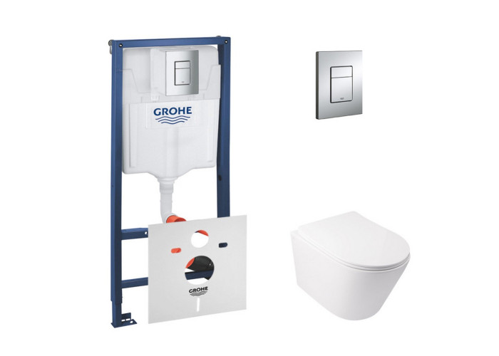 Інсталяція з панеллю змиву: Grohe Rapid SL 38772001. Унітаз з сидінням: Qtap Swan QT16335178W