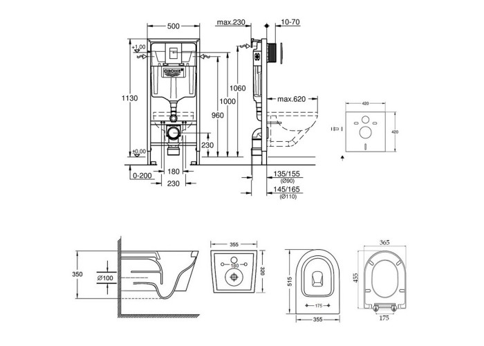 GROHE EasyConnect - зручне підмикання змивної панелі та спускного клапана. GROHE EcoJoy - водозберігаюча технологія. GROHE QuickFix - зручний монтаж. GROHE Safety - безпечність сталевих рам в інсталяційних системах. GROHE SpareFlush - додатковий об‘єм змиву. GROHE StarLight - хромоване покриття. GROHE ToolFree - просте підмикання. GROHE VarioPort - під‘єднання шланга до водопостачання в чотирьох точках. GROHE Whisper - тиха робота виробів.