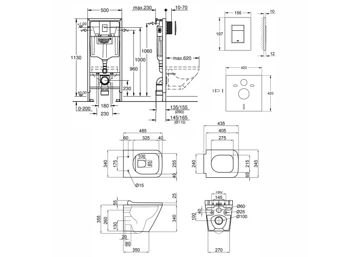 Інсталяція, панель змиву, звукоізоляційна прокладка, унітаз, сидіння, кріплення.