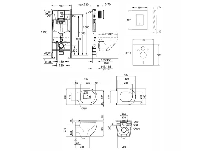 Інсталяція, панель змиву, звукоізоляційна прокладка, унітаз, сидіння, кріплення.