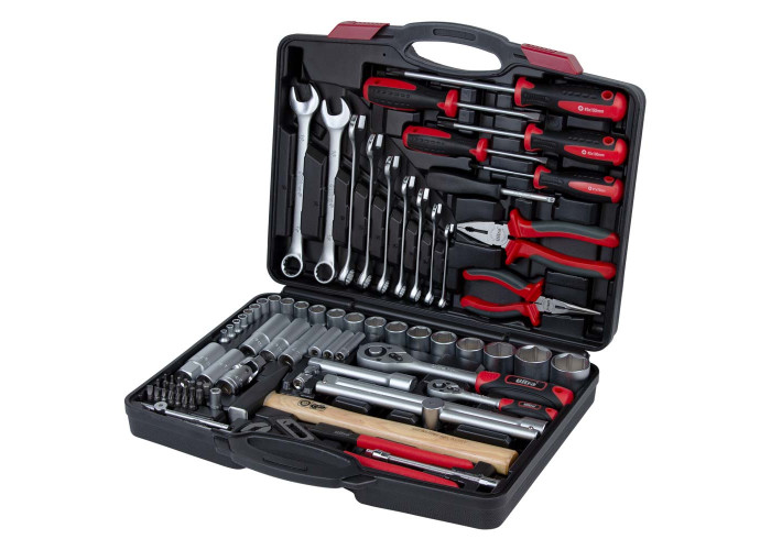 Набір інструментів, ключів, насадок торцевих і біти 1/4 ", 1/2" 80шт CrV ULTRA (6001112) призначений для роботи з різьбовими з'єднаннями при ремонті і обслуговуванні автомобілів. Інструменти виготовлені з хромванадієвої сталі і мають матове покриття. Набір розміщений в надійному кейсі з ударостійкого пластику з металевими замками і петлями, додатково оснащений захисними накладками на кутах.