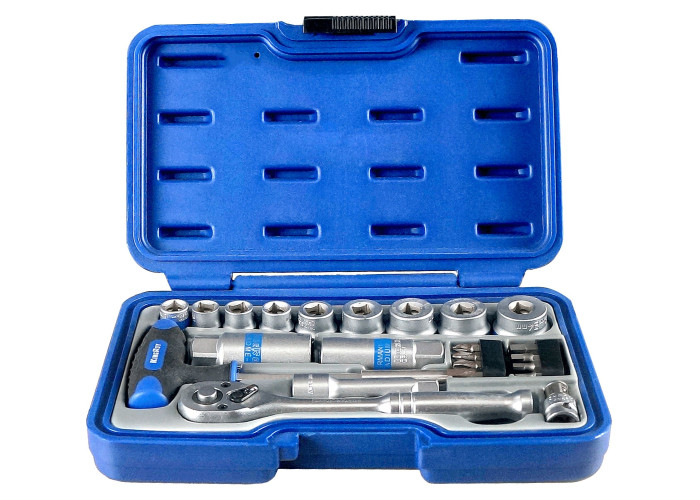 Набір інструментів професійного рівня. При виготовленні використана хром-ванадієва сталь, яка володіє відмінними властивостями, такими як міцність, жорсткість і стійкість до зношування. Детальна комплектація набору: 1/4 "DR   Викрутка-комірець 1/4 "   Біта HEX 3, 4, 5, 6   Біта SL 6   Біта PH PH1, PH2, PH3 3/8 "DR   Головка 10, 12, 13, 14, 17, 19, 21, 22, 24 мм   Головка свічкова 16, 21 мм   Тріскачка реверсивна з швидким скиданням   Подовжувач 75 мм   Адаптер-бітотримач 1/4 "3/8" (F) x1 / 4 "(F) HEX