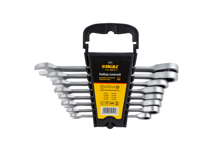Набір ключів накидних трещоточних 8шт 8, 10, 12, 13, 14, 15, 17, 19мм CrV satine Sigma 6010521