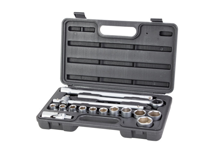 Набір насадок торцевих 1/2 "+ аксесуари 16шт (кейс) Grad (6003125) призначений для роботи з різьбовими з'єднаннями при ремонті і обслуговуванні автомобілів. Інструменти виготовлені з хромванадієва стали. Поставляються в компактному пластмасовому кейсі. Комплектація: тріскачка з реверсом; подовжувач 250 мм ; шарнір карданний; T-подібна рукоятка; насадки: 10, 11, 12, 13, 14, 15, 17, 19, 22, 24, 27 мм. Купити набір насадок торцевих Grad Ви можете, оформивши замовлення в нашому інтернет-магазині з допомогою простої форми, доставка здійснюється по всій Україні. Якщо у Вас виникли під роси, Ви можете зателефонувати за вказаними номерами телефонів або замовити зворотний дзвінок. Фахівці нашого інтернет-магазину нададуть Вам докладні консультації та допоможуть зробити правильний вибір.