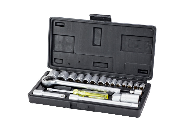 Набір насадок торцевих 1/4 ", 3/8" в кейсі 20 шт Grad (6003055) призначений для роботи з різьбовими з'єднаннями при ремонті і обслуговуванні автомобілів. Інструменти виготовлені з хромванадієвої сталі. Поставляються в компактному пластмасовому кейсі. Комплектація: перехідник ⅜ "(мама) - ¼" (тато); вороток викруточний ¼ "150 мм; насадки: (¼") 4, 4.5, 5, 6, 7 мм; (3/8") 8, 9, 10, 11, 12, 13, 14, 17, 19 мм; ⅜" тріскачка з реверсом; подовжувачі: 75, 150 мм; насадка свічкова 21 мм. Купити набір насадок торцевих Grad Ви можете, оформивши замовлення в нашому інтернет-магазині за допомогою простої форми, доставка здійснюється по всій Україні. Якщо у Вас виникли питання, Ви можете зателефонувати за вказаними номерами телефонів або замовити зворотний дзвінок. Фахівці нашого інтернет-магазину нададуть Вам докладні консультації та допоможуть зробити правильний вибір.