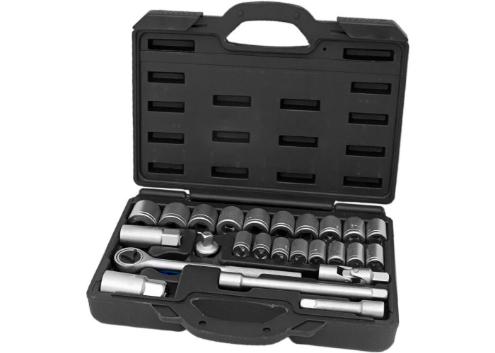 Набір насадок торцевих 3/8" в кейсі 25 шт Grad (6003085) призначений для роботи з різьбовими з'єднаннями при ремонті і обслуговуванні автомобілів. Інструменти виготовлені з вуглецевої сталі і мають антикорозійне покриття. Поставляються в компактному пластмасовому футлярі. Комплектація: ⅜" тріскачки з реверсом; насадки свічкові: 16, 21 мм; подовжувачі: 75, 150 мм; шарнір карданний; насадки: 6, 7, 8, 9, 10, 11, 12, 13, 14, 15, 16, 17, 18, 19, 20, 21, 22, 24 мм. Купити набір насадок Grad Ви можете, оформивши замовлення в нашому інтернет-магазині за допомогою простої форми, доставка здійснюється по всій Україні. Якщо у Вас виникли питання, Ви можете зателефонувати за вказаними номерами телефонів або замовити зворотний дзвінок. Фахівці нашого інтернет-магазину нададуть Вам докладні консультації та допоможуть зробити правильний вибір.