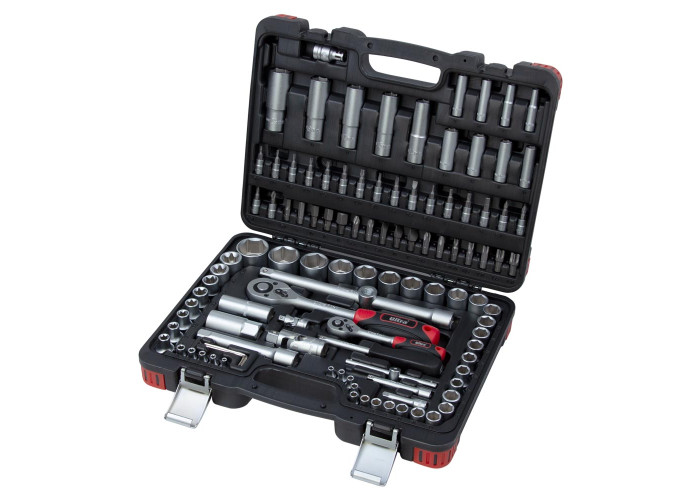 Набір насадок торцевих і біт 1/4 ", 1/2" 108шт CrV Taiwan ULTRA (6003132) призначений для роботи з різьбовими з'єднаннями при ремонті і обслуговуванні автомобілях і інших механізмів. Комплектація: ½ "Насадки (17 шт.): 10, 11, 12, 13, 14, 15, 16, 17, 18, 19, 20, 21, 22, 24, 27, 30, 32 мм; Насадки глибокі: 14 , 15, 17, 19, 22 мм; подовжувачі: 125 мм, 250 мм; шарнір карданний; насадки Torx: Е10, Е11, Е12, Е14, Е16, Е18, Е20, Е24; рукоятка з храповим механізмом і реверсом 250 мм (72 зуба); насадки свічкові 16, 21 мм; перехідник: ½ "-⅜" з отвором для воротка. Біти: SL 8, 10, 12; T40, 45, 50, 55, 60; PH 3, 4; PZ 3, 4 ; HEX 7, 8, 10, 12, 14 мм; Т40, 45, 50, 55, 60; Тримач для біт ½ "х5 / 16". ¼ "Насадки (13 шт.): 4, 4.5, 5, 5.5, 6, 7, 8, 9, 10, 11, 12, 13, 14 мм; насадки глибокі: 6, 7, 8, 9, 10, 11, 12, 13 мм; подовжувачі 50, 75 мм; шарнір карданний; рукоятка з храповим механізмом і реверсом 150 мм (72 зуба); Насадки Torx: Е4, 5, 6, 7, 8; комірець Т-подібний; ключі шестигранні: 1.5, 2, 2.5 мм; подовжувач викрутка .