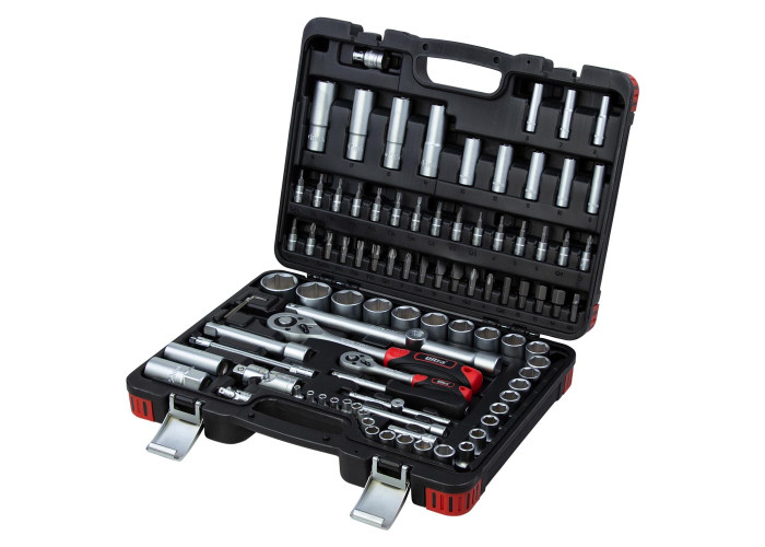 Набір насадок торцевих і біти 1/4 ", 1/2" 94шт CrV Taiwan ULTRA (6003142) призначений для роботи з різьбовими з'єднаннями при ремонті і обслуговуванні автомобілів. Інструменти виготовлені з хромванадієва сталі і мають матове покриття. Набір розміщений в надійному кейсі з ударостійкого пластику з металевими замками і петлями, додатково оснащений захисними накладками на кутах.