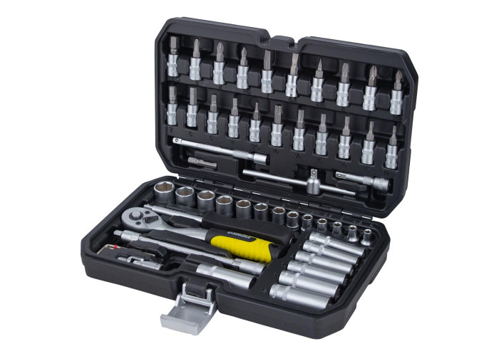 Набір насадок торцевих і біти 1/4 "53шт CrV Sigma (6003521) призначений для роботи з різьбовими з'єднаннями при ремонті і обслуговуванні автомобілів. Інструменти виготовлені з хромованадієвої сталі і мають матове покриття. Поставляються в ударопрочном, пластиковому кейсі з замками і металевими петлями. Набір - прекрасний помічник для ремонтних і столярно-слюсарні роботи. Такий набір ідеально підходить як для професійного, так і для побутового використання. Переваги і характеристики: зручний і компактний набір; надійний кейс з ударопр чного пластика з замками і металевими петлями; насадки і інструменти з хромованадієвої сталі; антикорозійна обробка.