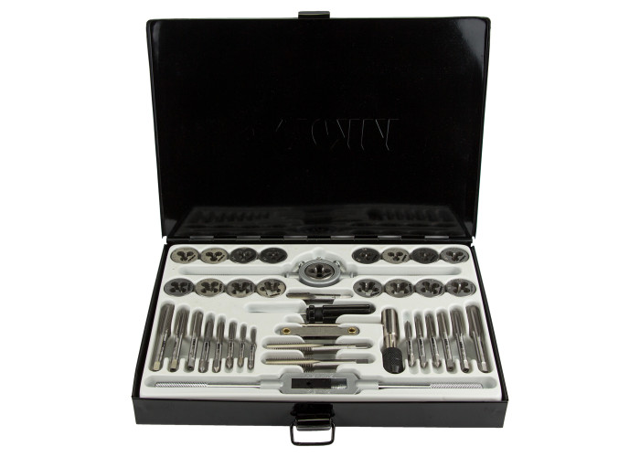 Набір плашок і мітчиків 40 предметів (металевий кейс) Sigma (1643251) призначений для нарізування внутрішньої та зовнішньої метричної різьби на металевих виробах, для калібрування і відновлення пошкоджених ділянок різьблення. При нарізуванні різьблення мітчик попередньо змащують консистентним мастилом, наприклад, солідолом. Особливості: рифлені поверхні на ручках власників для запобігання прослизання інструменту; зручний і міцний кейс для перенесення і зберігання; підходить для широкого діапазону матеріалів; плашки, завдяки високій жорсткості, дають можливість отримати різьблення високої якості; мітчики призначені для нарізування різьблення як в наскрізних, так і глухих отворів. Квалітет - 6g; кут профілю різьби - 60º; збіг різьблення - для плашок: 2х2Р; для мітчиків: 5К; тип отворів - для мітчиків: глухі, наскрізні; стандарт - плашки DIN 233, мітчики DIN 352. Комплектація: плашки: М3х0.5, М3х0.6, М4х0.7, М4х0.75, М5х0.8, М5х0.9, М6х0.75, М6х1.0, М7х0.75, М7х1.0, М8х1.0, М8Х1.25, М10х1.5, М10х1.25, М12х1.5, М