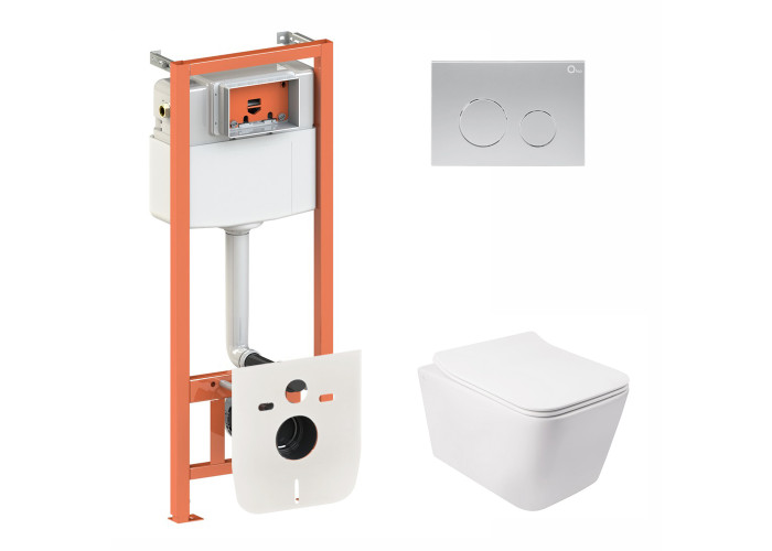 Набір Qtap інсталяція 3 в 1 Nest QT0133M425 з панеллю змиву круглою QT0111M11111SAT + унітаз з сидінням Crow QT05335170W є зручним рішенням для сучасного санвузла. Він комплектується унітазом, сидінням, інсталяційною рамою, панеллю змиву, звукоізоляційною прокладкою. Завдяки застінному монтажу інсталяції і підвісній конструкції унітазу цей комплект зробить Ваші гігієнічні процедури більш комфортними, а прибирання не додасть зайвого клопоту.