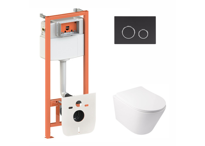 Набір Qtap інсталяція 3 в 1 Nest QT0133M425 з панеллю змиву круглою QT0111M11V1146MB + унітаз з сидінням Swan QT16335178W є зручним рішенням для сучасного санвузла. Він комплектується унітазом, сидінням, інсталяційною рамою, панеллю змиву, звукоізоляційною прокладкою. Завдяки застінному монтажу інсталяції і підвісній конструкції унітазу цей комплект зробить Ваші гігієнічні процедури більш комфортними, а прибирання не додасть зайвого клопоту.